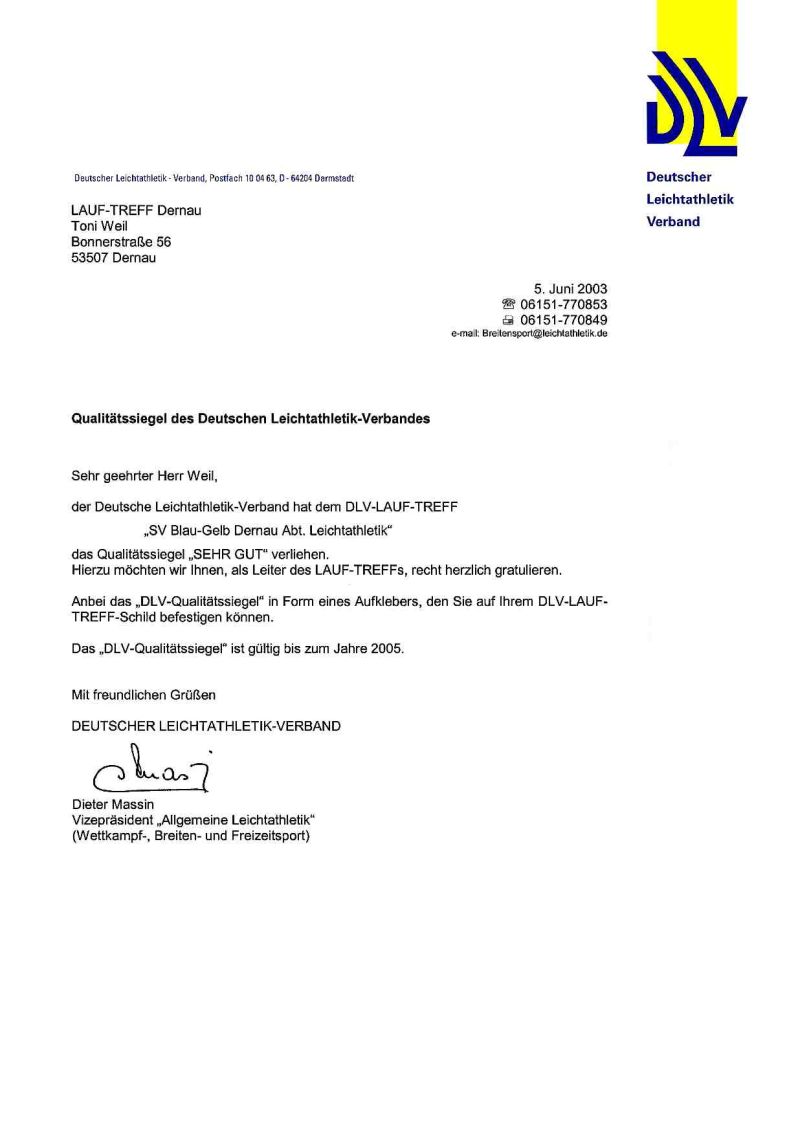 ! Der Lauftreff Dernau ist ausgezeichnet mit dem DLV Qualitätssiegel !